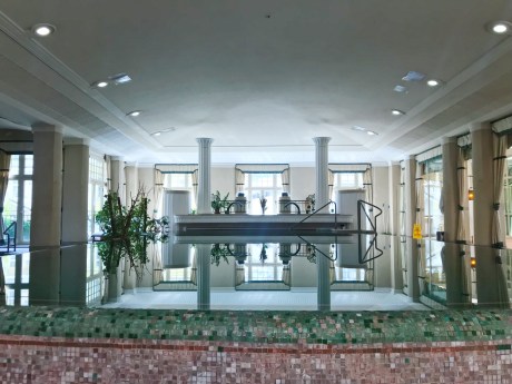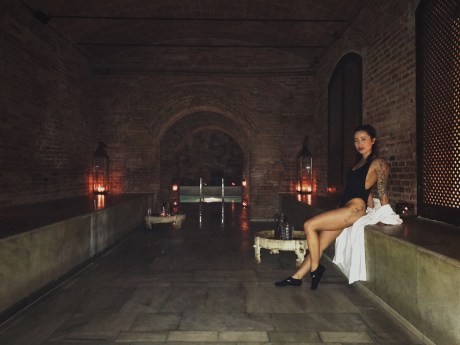 After changing into our swim attire we headed into the facility. Maybe I’m “special” but I could not figure out between all the gaudy marble, glass walls, mirrors and doors with signage which room I was supposed to initially enter. My Love finally found me and led me into the main room which was actually quite beautiful… if you don’t think about the water that looks like it’s not as maintained as AIRE’s or the creepy older “large” Eastern European men gazing at you in your high-waisted side-boob one-piece bikini. Can a girl get a little privacy?! Especially when I’m with my boyfriend. 😌 A large pool was the focal point of the space with a rotunda of lounge chairs at the opposite end being drenched with sun from the skylights of the dome.
