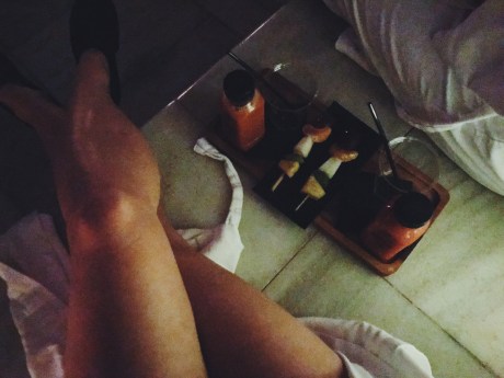 After checking in with the receptionist, we were given a robe and our changing room keys: some thing I thought was a unique take on mass-ly visited spas…a room of your own to change in. We were offered to purchase the use of a towel which would have been nice in hindsight, as post-spa showering is must. Not sure if you can just bring your own, which would obviously be an even wiser decision.