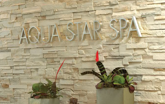 As I approached the actual hotel, I saw the floor to ceiling, wall to wall, glass doors and windows that encompassed the roundabout area where I was dropped off. I entered the premises to take a stroll through the building, down the stairs, and into the lair for the spoiled. Opening the vault-like door I came to understand the reasoning for such a thing: seclusion, a safe entrance to another world, and peace of mind. I was greeted and checked in by a lovely, knowledgable staff member. Well-timed was the approach of the massuse who would be conducting the start of my stay at The Aqua Star Spa. Gentle in her approach, and swift in the explanation of our itenerary I was escorted to the changing room where I put on a fluffy robe, slippers and checked my worries at my locker.